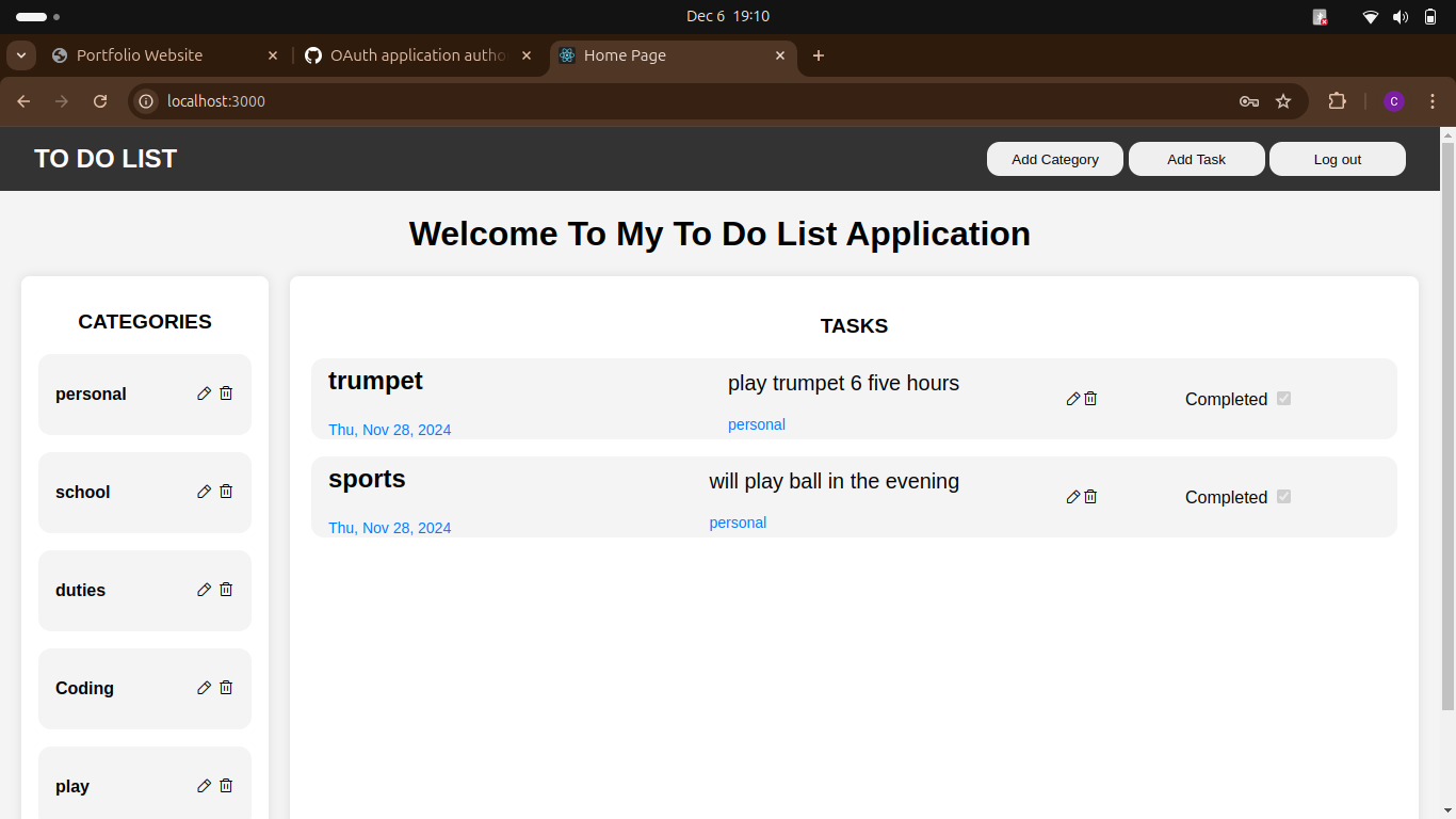 This is a web-based To-Do List Application built with Node.js, Express.js, EJS, and SQL. It allows users to create,read, update, and delete tasks (CRUD operations), as well as organize tasks into different categories for better management.